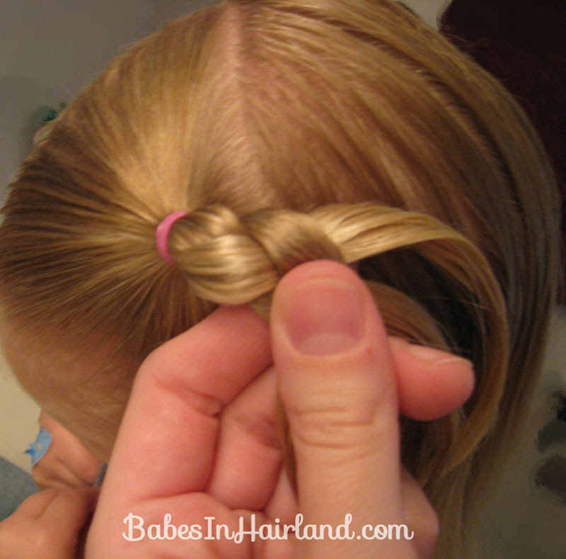. French Braid into Bun. I just parted her hair down the middle and pulled it back. Tied knot box braid.